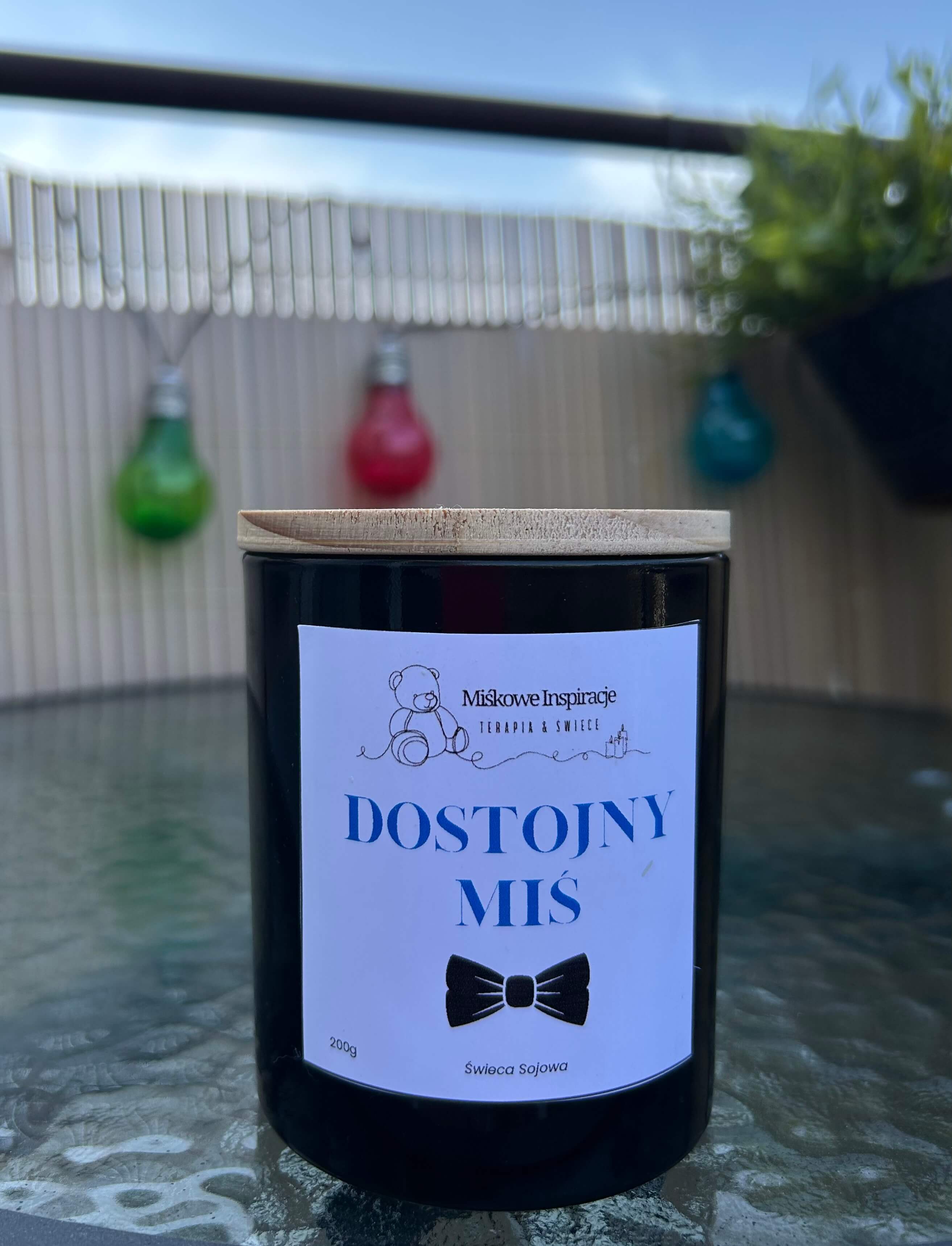 Klasa. Charakter. Głębia. “Dostojny Miś” to świeca zapachowa stworzona z myślą o miłośnikach eleganckich, wyrazistych aromatów. Zamknięta w błyszczącym, czarnym szkle z drewnianym wieczkiem, stanowi stylowy dodatek do wnętrza – zarówno nowoczesnego, jak i klasycznego.