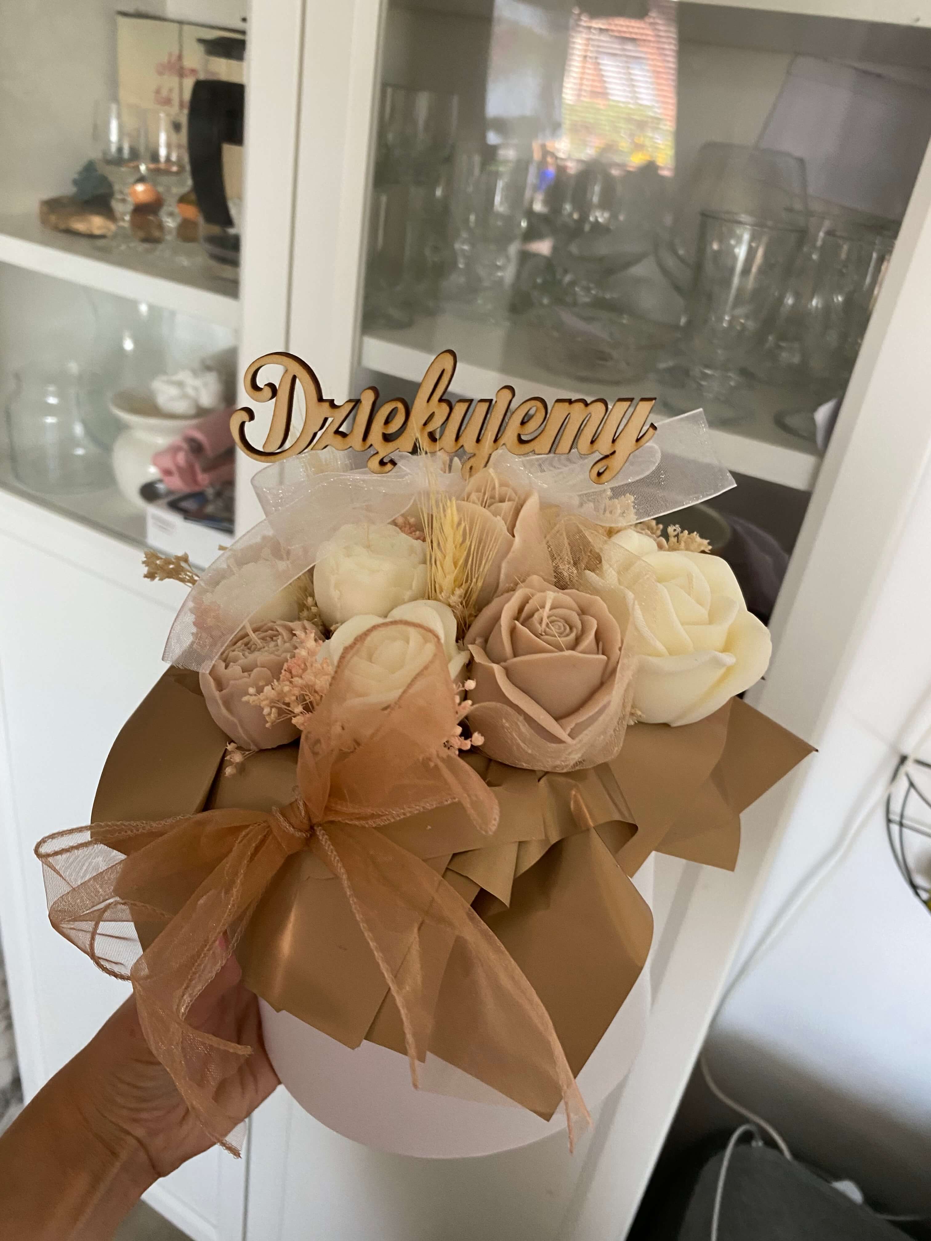 Elegancki i subtelny flowerbox w delikatnych, beżowych tonacjach to doskonały wybór na wyjątkowe okazje. Idealnie sprawdzi się jako prezent z okazji ślubu, komunii, chrztu czy jubileuszu. To także piękna forma podziękowania – dla rodziców, chrzestnych, nauczycieli czy współpracowników.