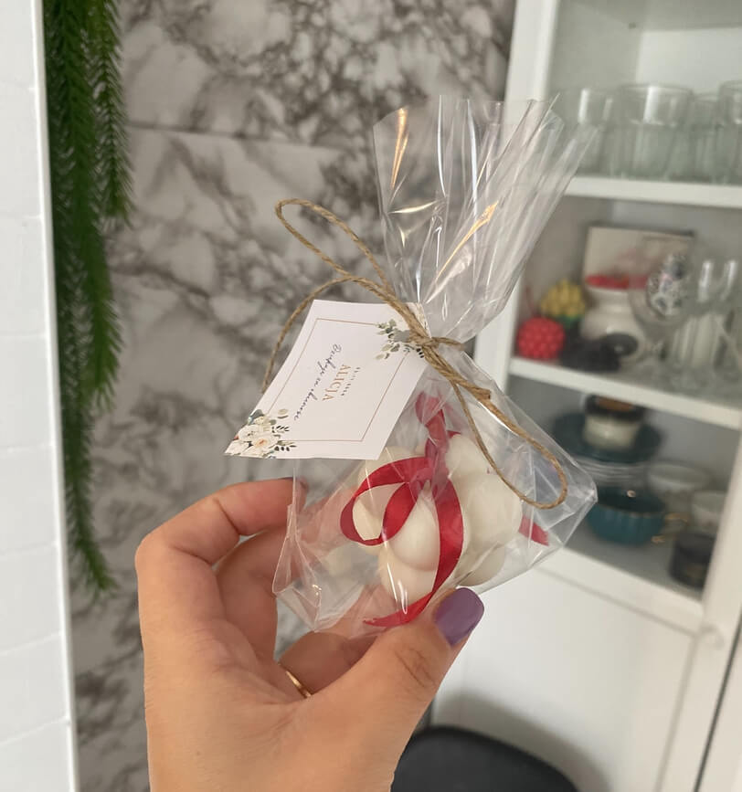 Świeca posiada personalizowaną etykietę z imionami, datą lub krótkim tekstem – to drobny detal, który czyni prezent naprawdę wyjątkowym i osobistym.