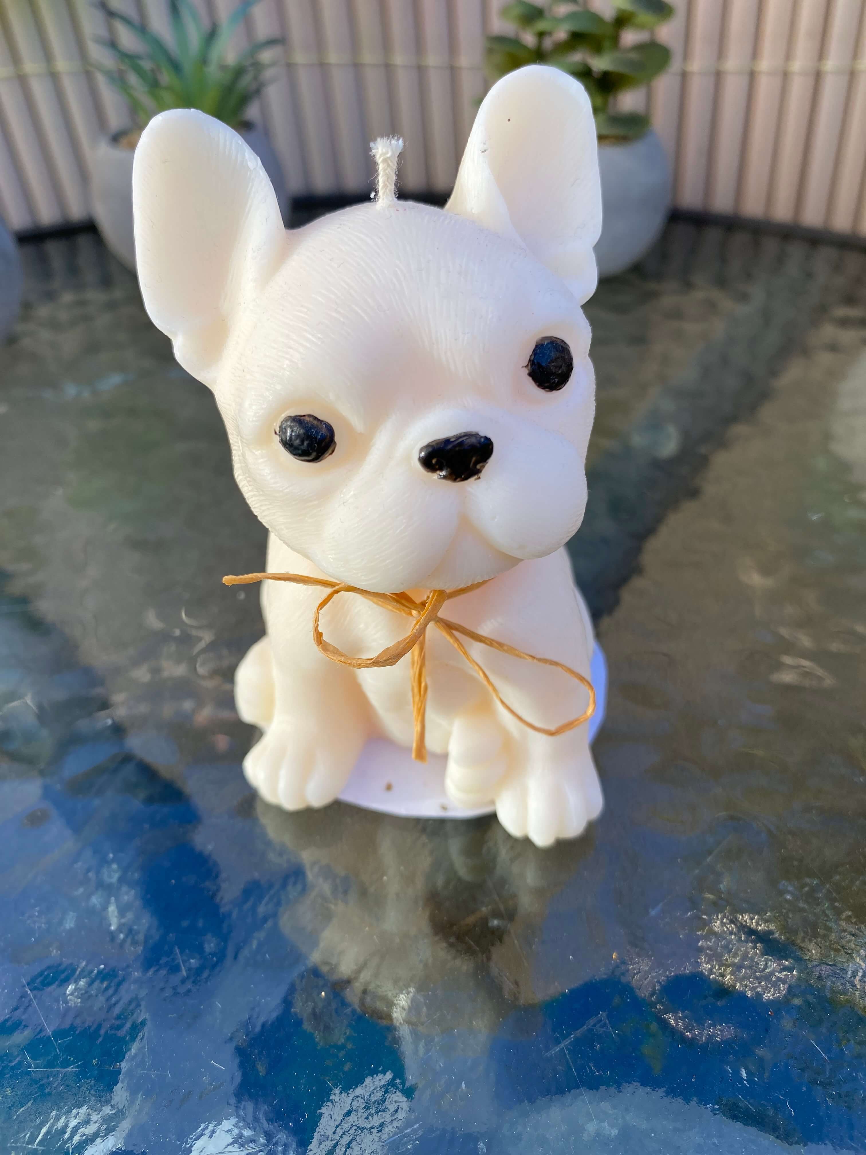 Świeca Dekoracyjna – Buldog Francuski (Biała) 142g