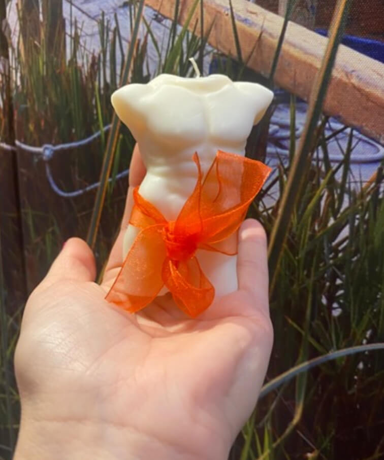 Zmysłowa, zabawna i niezapomniana – nasza świeca w kształcie nagiego męskiego ciała to absolutny hit wieczorów panieńskich! Wykonana z naturalnego wosku sojowego i ważąca 95 gramów, idealnie sprawdza się jako prezent dla Panny Młodej, dekoracja imprezy lub dodatek do zestawu upominkowego.