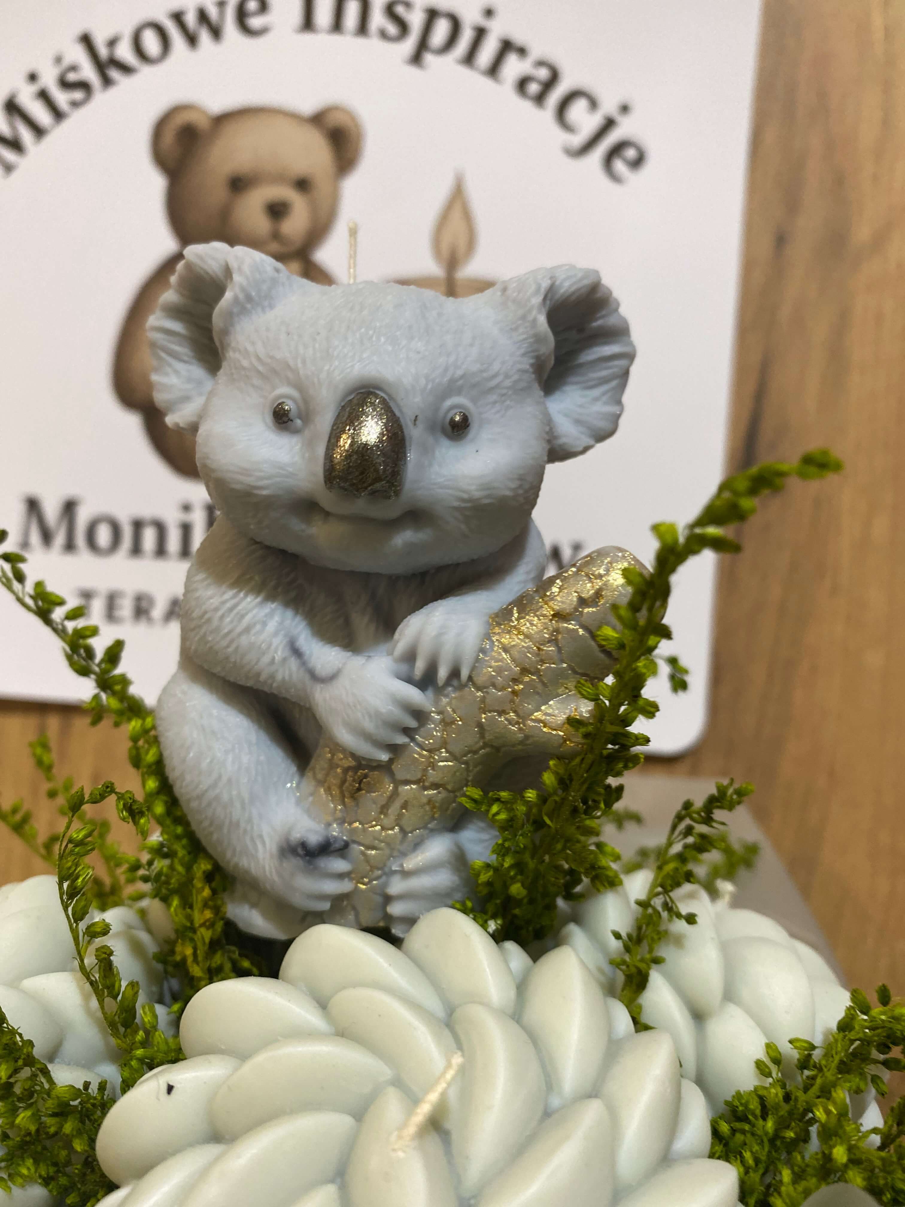 Urocza świeca sojowa w formie misia koali przytulonego do drzewka to wyjątkowy dodatek do dziecięcego pokoju, prezentu z okazji narodzin, baby shower lub upominku „z sercem”. Symbolizuje ciepło, opiekę i bliskość natury.